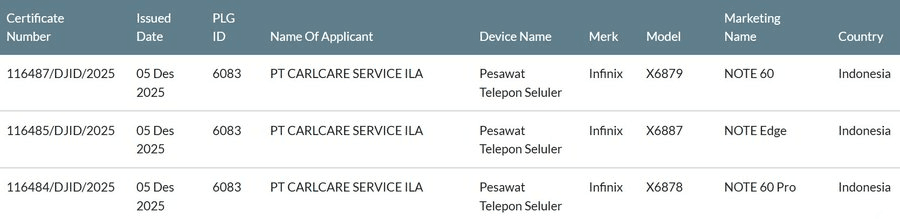 Infinix Note 60, 60 Pro, Note Edge revealed via certification