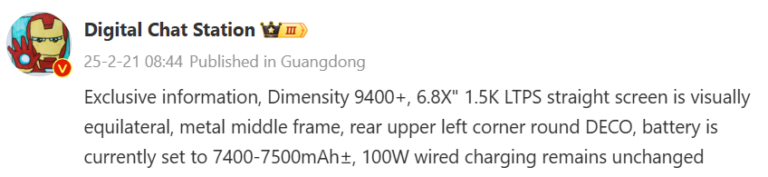 The smartphone is set to be equipped with MediaTek’s forthcoming Dimensity 9400 Plus chipset, ensuring robust performance. It is anticipated to include a substantial battery capacity of either 7,400mAh or 7,500mAh, along with support for 100W fast charging, mirroring the specifications of its predecessor.