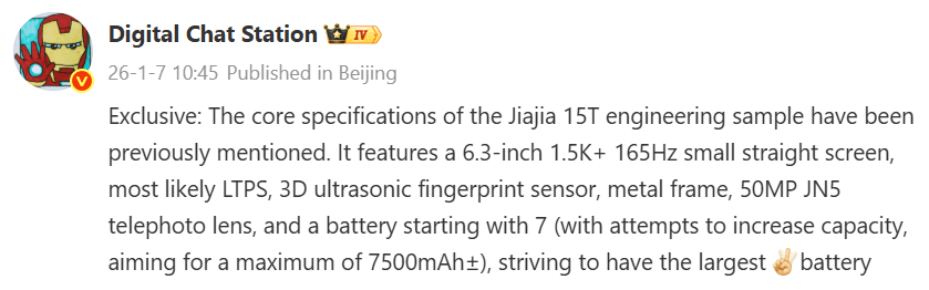 Although DCS has not disclosed the device’s chipset, there are reports that it might come with a Snapdragon 8 Elite Gen 5.