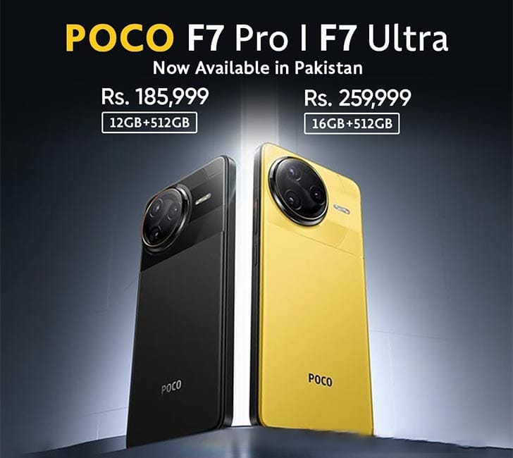 They support WiFi 7 and Bluetooth 5.4, the latest wireless tech. The phones feature the fastest LPDDR5X RAM and UFS 4.1 storage for quick app loading and file transfers. The Poco F7 Pro is priced at Rs. 185,999 in Pakistan for the 12GB RAM and 512GB storage version. Both models are now available across Pakistan through online stores and official Xiaomi outlets like Mistore, Xiaomi Sale, and Corecart.